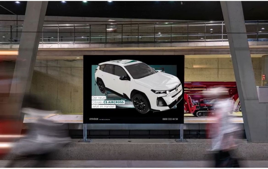 Durch realitätsnahe Tiefeneffekte entsteht der Eindruck, der neue C5 Aircross löse sich aus dem Bildschirm und trete in den Stadtraum hinaus. Das Fahrzeug wird dynamisch in Szene gesetzt und erzeugt so einen Überraschungseffekt. Diese Form der 3D-DOOH-Kommunikation steigert nicht nur die Sichtbarkeit im öffentlichen Raum, sondern schafft emotionale Markenmomente mit hoher Wiedererkennung. Der C5 Aircross wird so zum visuellen Protagonisten einer neuen Generation von digitaler Außenwerbung.